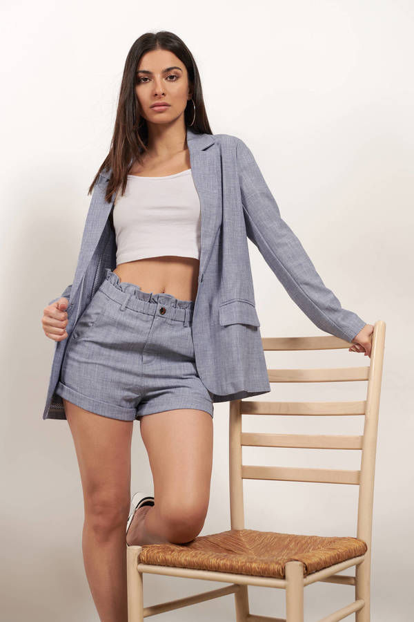 Get ready to make an impression with the Run The Meeting Paperbag Shorts in Blue! These shorts feature a delightful ruffle detail at the waistband and two front pockets for all your essentials. Pair them with the Run The Meeting Blazer Jacket for a coordinated look that's both fun and sophisticated!
