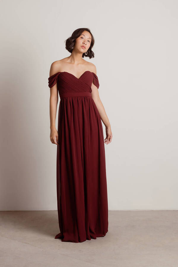 Adrienne Off The Shoulder Sweetheart Maxi Dress - Wine