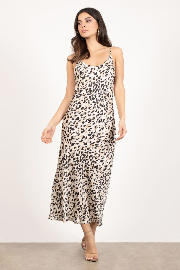 Mya Leopard Print Satin Maxi Dress - Ivory Multi