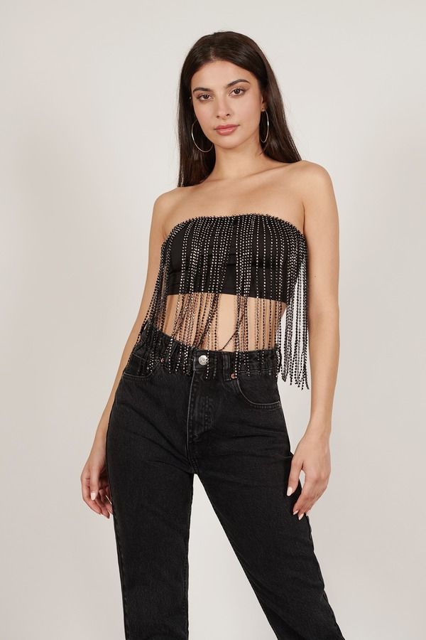 - Pairs with Drippin Glam Rhinestone Fringe Skirt