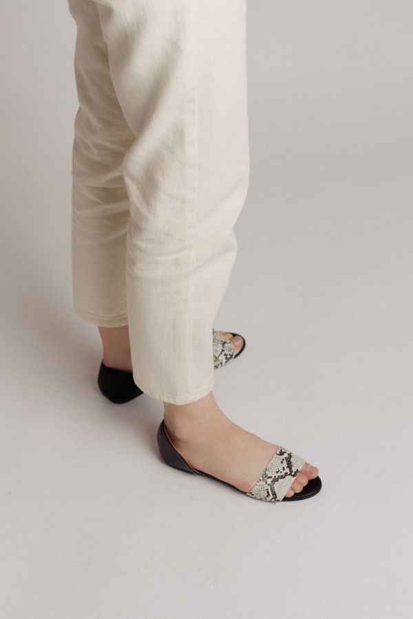 Vada Open Toe Flats - Ivory Black