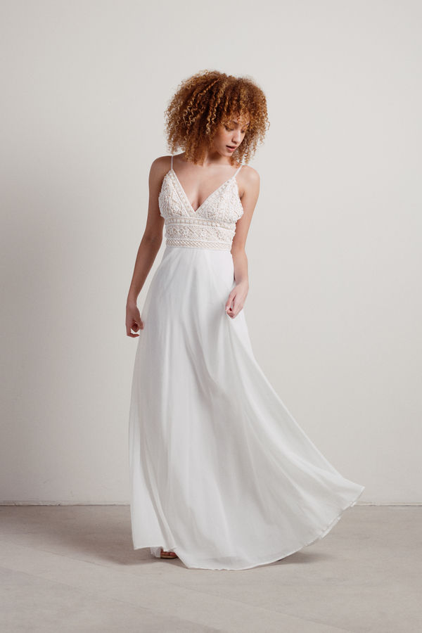 Step into a fairy tale with the Enchanted Crochet Deep V Maxi Dress. Featuring intricate crochet detailing and a dreamy deep V-neckline, this ethereal dress is perfect for the free-spirited romantic. The flowing skirt adds a touch of grace and movement, while the lightweight fabric keeps things breezy and comfortable. Ideal for beach weddings or boho-chic occasions, it's available in enchanting White.