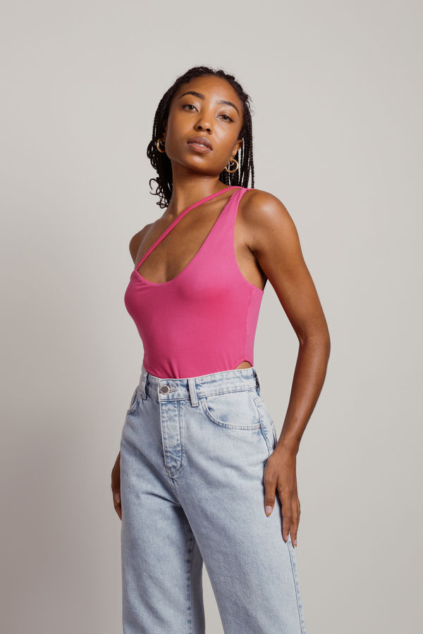 Elevate your summer look with the Summer Baby Asymmetrical Bodysuit in Fuchsia! Featuring a bold asymmetrical design and high cut for added allure, this chic bodysuit is perfect for making a statement. The snap button closure ensures a flattering fit, while the bright fuchsia hue adds a pop of color to your wardrobe. Pair it with high-waisted jeans or a mini skirt for a look that's ready for summer nights or weekend adventures!