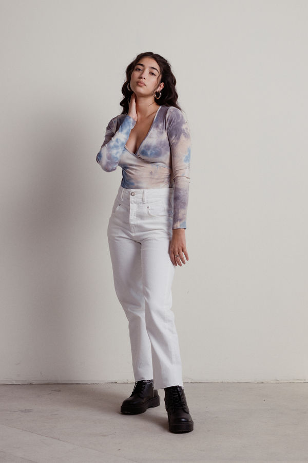 Dive into vibrant style with the Kiegan Tie Dye Bodysuit in Blue Purple! This ribbed knit wonder features a sultry surplice wrap front and eye-catching tie dye that's all about making a splash. Perfect for turning heads at any event or adding a bold twist to your everyday look, this bodysuit combines fun and fashion effortlessly. Whether you're hitting the town or just feeling fabulous, the KIEGAN Bodysuit keeps you looking cool and confident with every move!