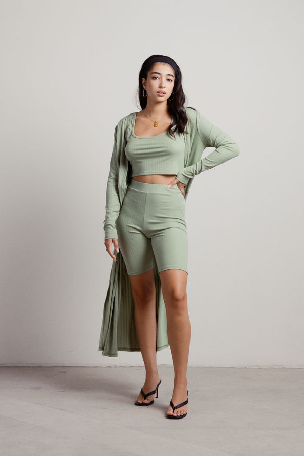 Ready to steal the spotlight? The Buttercup Ribbed Biker Short Set in Sage has you covered! This three-piece marvel features a ribbed cardigan with chic back slits, a comfy tank top, and biker shorts with an elastic waistband. Whether you're hitting the town or chilling at home, this set ensures you look stylish and feel fabulous. Mix and match for endless outfit possibilities!