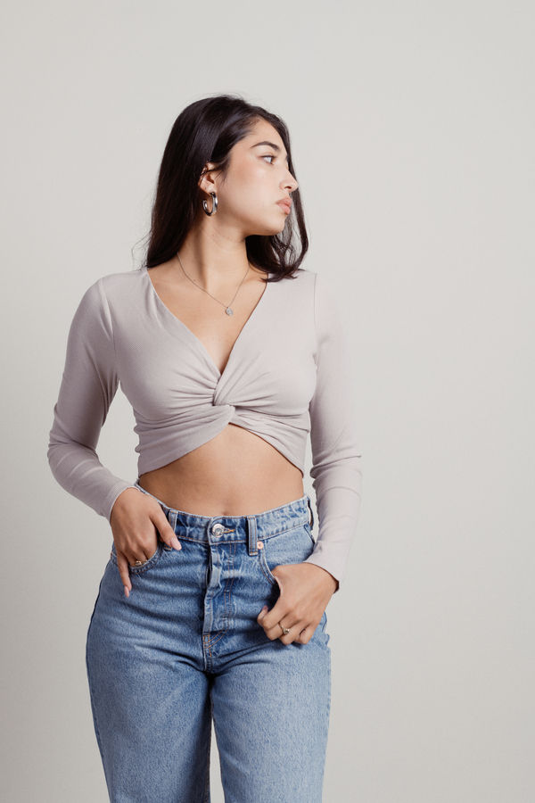 Elevate your essentials with the Basic Girl Crop Top in Taupe! This crop top features a playful knotted detail and long sleeves, adding a touch of flair to your everyday style. Perfect for layering or standing out on its own, it's your go-to for effortlessly chic looks that keep you feeling fabulous from dawn till dusk. Who knew basics could be this fun?