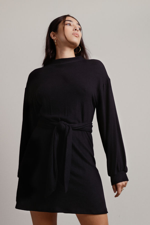 Monique Tie Knot Long Sleeve Mini Dress - Black