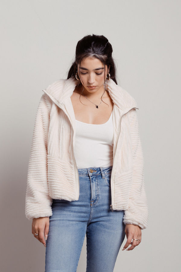 How Sheepish Textured Faux Fur Jacket Faux Fur Jacket - Blush