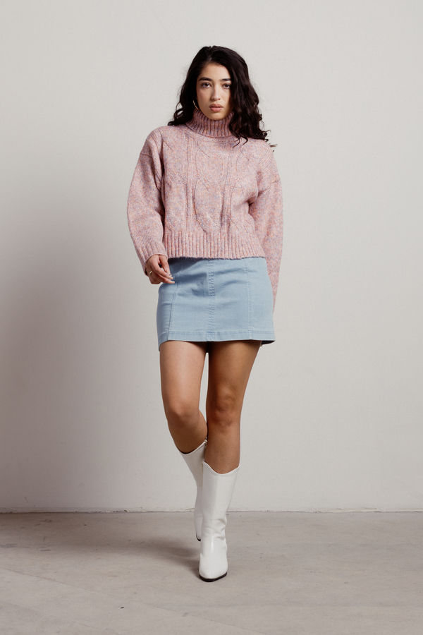 Stay stylishly warm with the Extra Passion Marbled Turtleneck Sweater in Pink Multi! This cropped cable knit sweater, with its cozy turtleneck and unique marbled pattern, blends comfort with chic vibes. Perfect for making a fashion statement while staying snug, it's your new favorite for the season. Shine bright and cozy up!