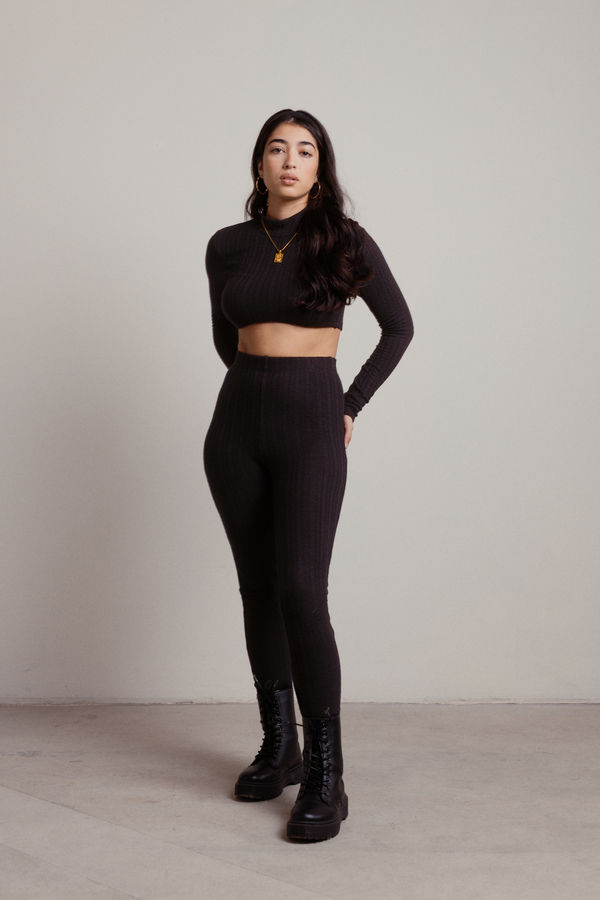 Kelce Ribbed Crop Top and Lounge Set - Black