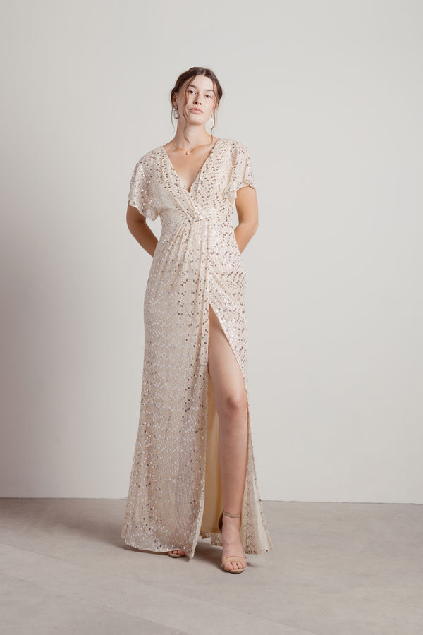 Lustrous Charm Cowl Slit Maxi Dress - Champagne