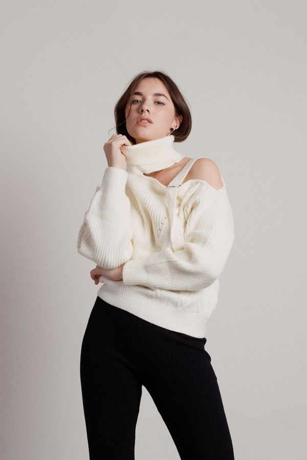 Elevate your winter vibe with the Cosy Cutout Sweater in Cream. Featuring a daring cutout, chic turtleneck, and a stylish shoulder strap, this cable knit masterpiece knits together warmth and fashion effortlessly. Perfect for layering or standing out solo, redefine cozy elegance and embrace sweater weather in style.