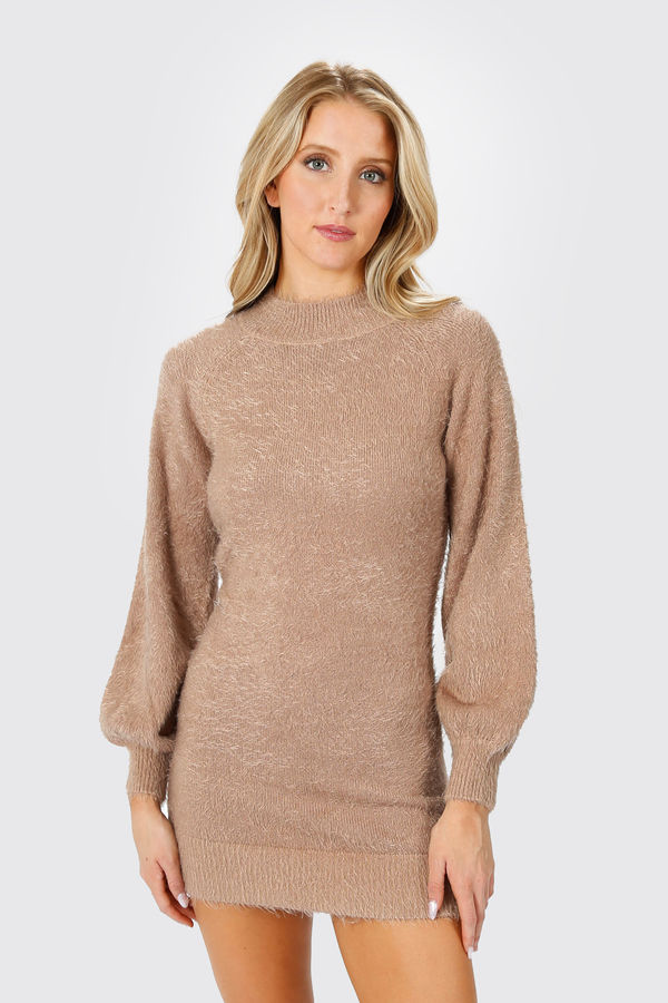 All The Hugs Fuzzy Sweater Mini Dress - Tan