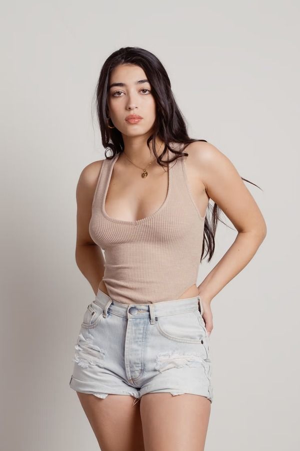 Unleash your inner fashionista with the High Sides Ribbed Bodysuit in Beige! This daring piece features high side cutouts and a deep V neckline for an ultra-flattering silhouette. The thong bottom coverage and snap button closure ensure you stay comfy and chic all day or night. Made from ribbed fabric for a snug fit, it's perfect for layering or wearing on its own. Get ready to turn heads with this bold and stylish bodysuit!