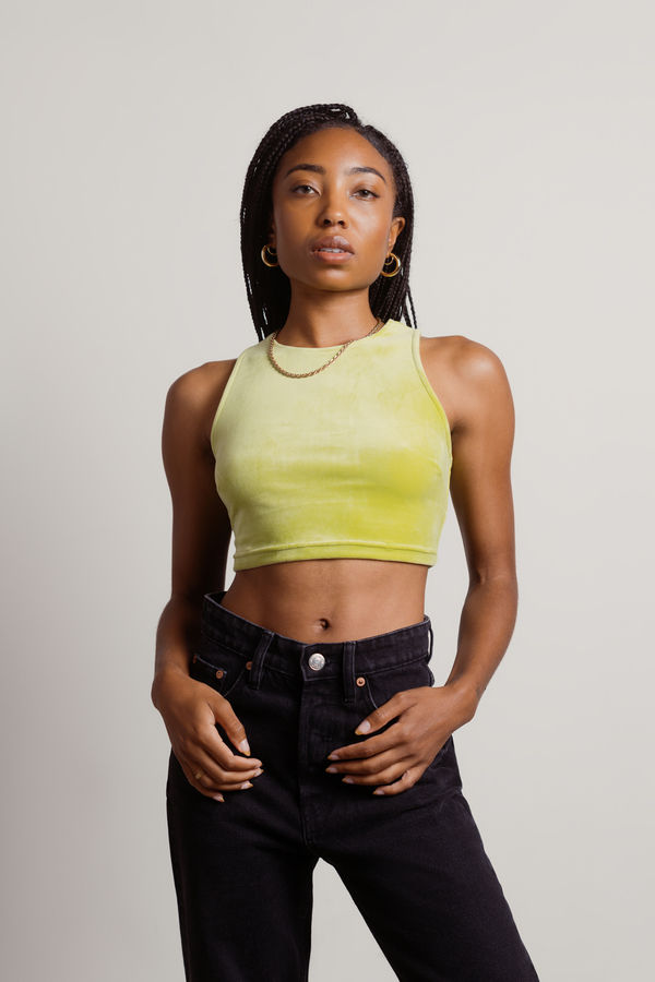 Spice up your wardrobe with the Key Crop Top in Lime! This velvet beauty features a sultry criss-cross back lace-up design that adds a bold twist to any outfit. Perfect for a night out, pair it with high-waisted jeans and strappy heels for a look that's both chic and playful. Whether you're heading to the club or a night out with friends, this top is sure to make a statement!