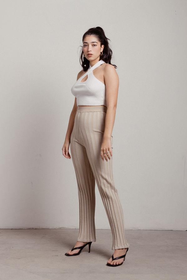 Revamp your look with the Riane Ribbed Pants in Beige! These high-waisted, ribbed pants offer a chic and simple design that's perfect for any occasion. Their stylish texture and comfortable fit make them ideal for both relaxed days and trendy outings. Add a playful twist to your wardrobe and enjoy effortless elegance with every wear!