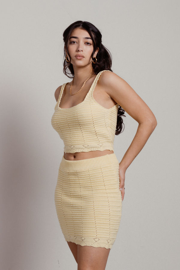 Lydia Knit Crop Top and Mini Skirt Set - Yellow
