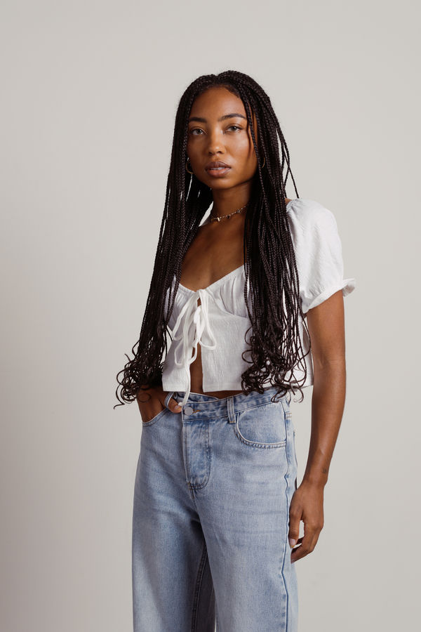 The Eclair Off White Puff Sleeve Open Tie Crop Top is a cute flowy summer top to wear on the hottest days. This crop top features puffed sleeves and adjustable front tie details. Pair this boyfriend jeans and sandals to wear on a casual day out or at brunch with your besties.
