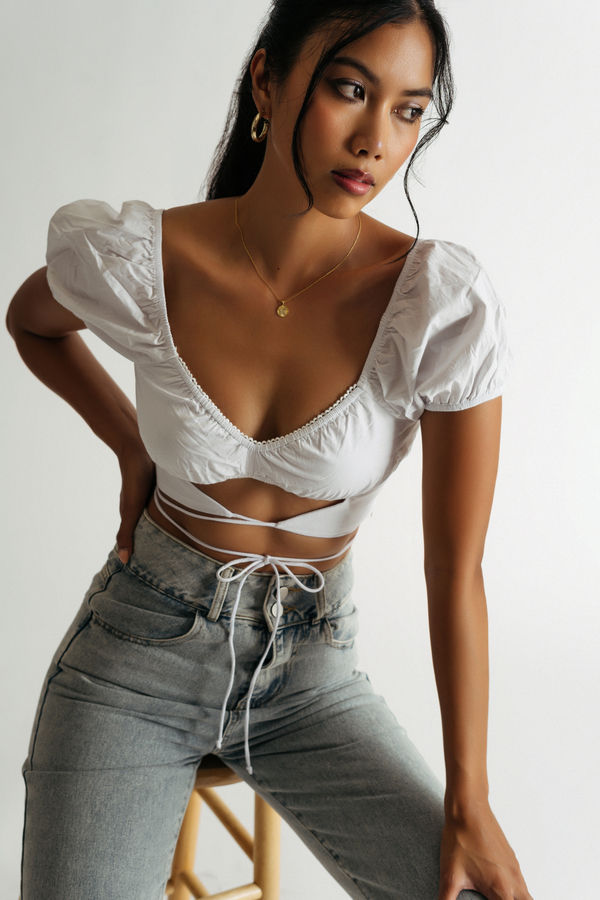 Capture hearts in the Fake Love Crop Top in White! This dreamy crop features a flattering front cutout, playful ruffle trim, and a front tie closure for a touch of romance. The hidden side zipper adds a sleek finish, making it perfect for brunch, museum dates, or any of your spring and summer outings. Light, fun, and effortlessly chic—this top is a must-have for your seasonal wardrobe!