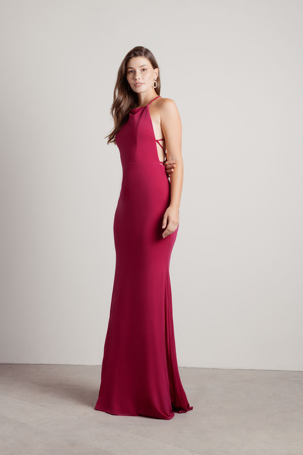 Another Night Out Halter Cross Back Maxi Dress - Magenta