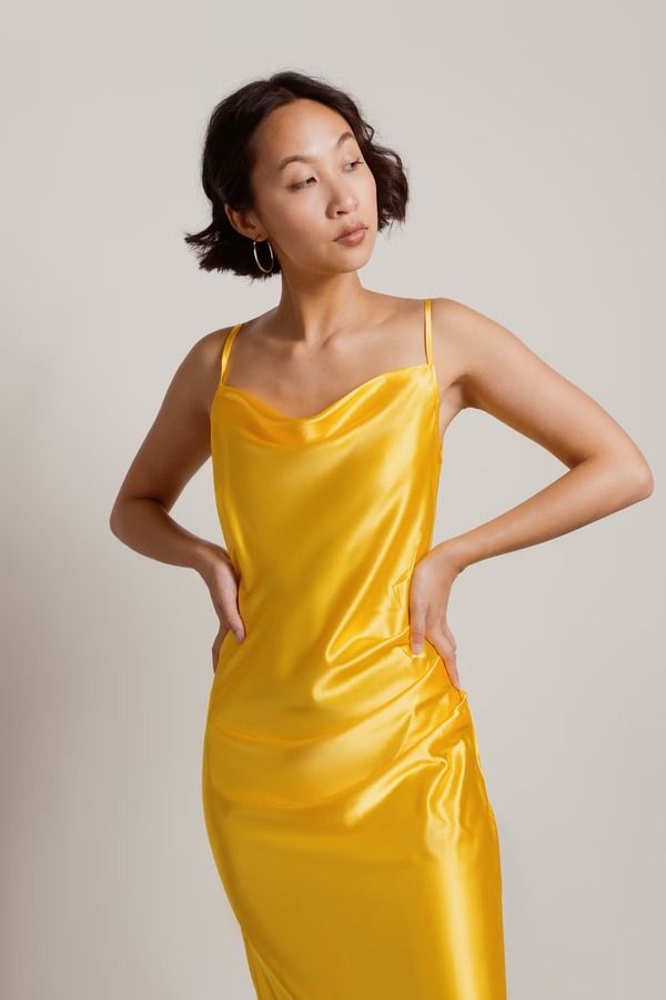 In Her Glow Satin Off Shoulder Maxi Dress - Butter Yellow