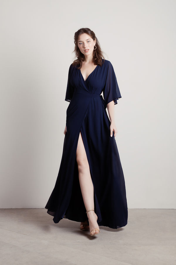 We Could Be Deep V High Slit Maxi Dress - Navy