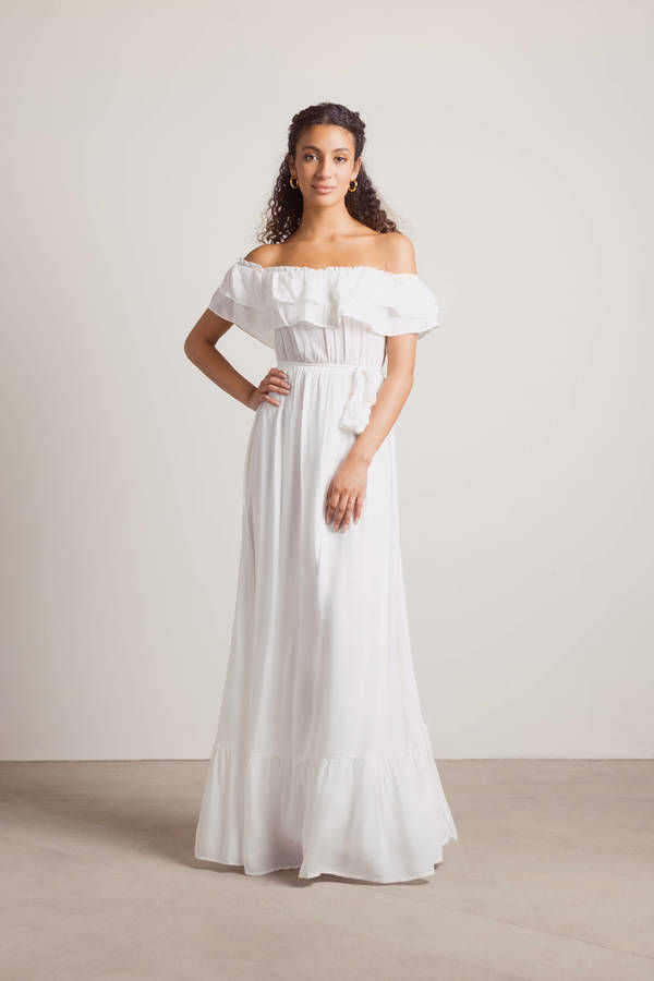 Del Mar Ruffle Off the Shoulder Maxi Dress - Off White