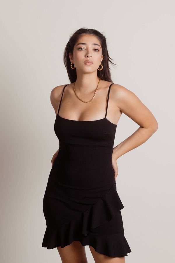 Grad Day Square Neck Cami Mini Dress - Black