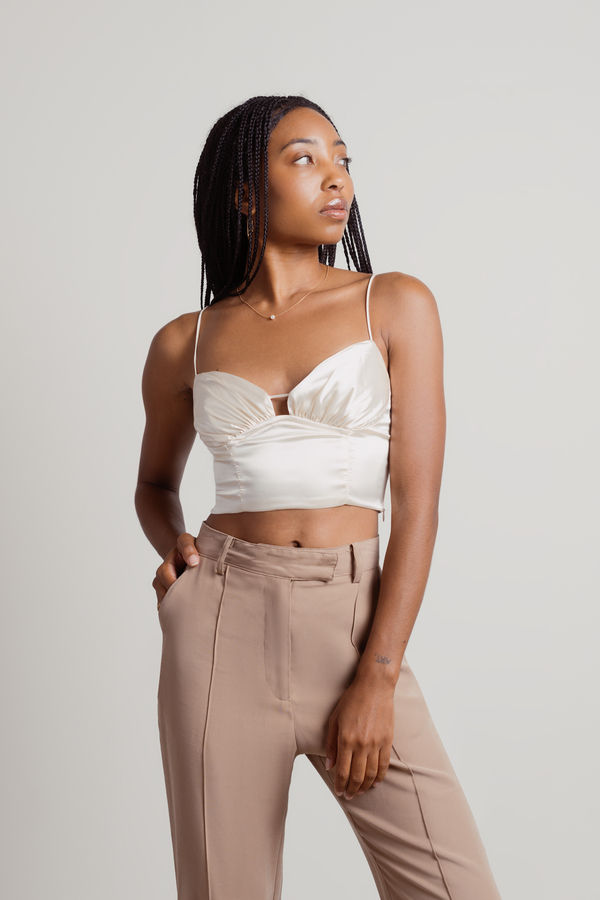 Feel fabulous in the Better Love Crop Top in Ivory! This satin crop tank top features ruched detailing, a hidden side zipper, and delicate spaghetti straps for a chic, understated look. Perfect for a night out, it pairs beautifully with straight-legged pants or denim jeans, offering a cute yet casual summer vibe that’s sure to turn heads wherever you go.
