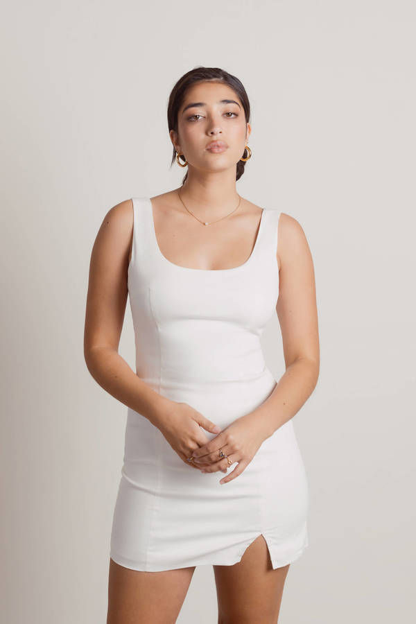 Play My Game Slit Bodycon Midi Dress - White