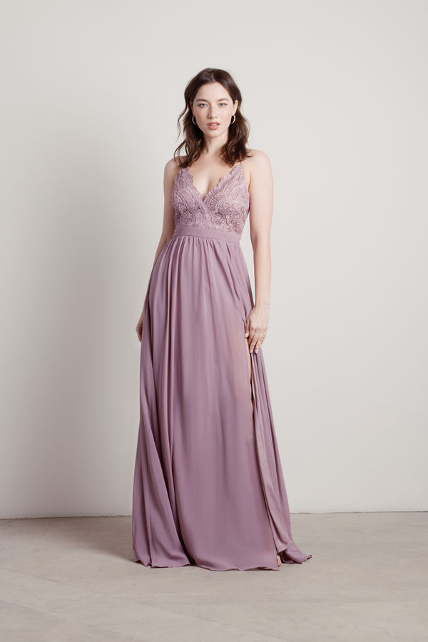 Forget Me Not Lace High Slit Maxi Dress - Mauve