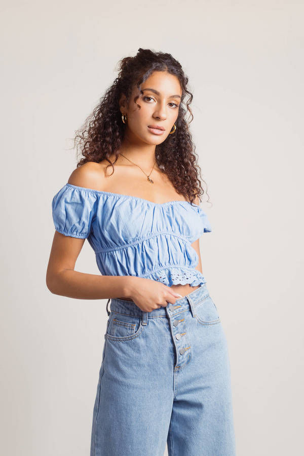 Boho-chic and effortlessly stylish, the Celia Crop Top in Blue is the perfect addition to your wardrobe. Featuring delicate eyelet lace trim, a flattering v-neckline, and short puff sleeves, this top exudes laid-back charm. Pair it with high-waisted shorts and boots for a festival-ready look that’s both comfortable and coo
