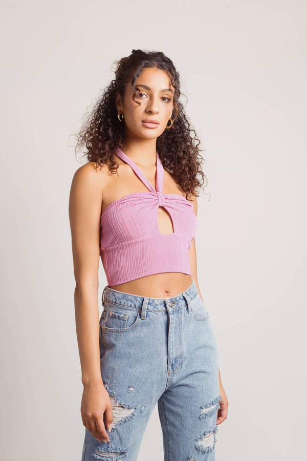 Step into vacation mode with the Super Hyper Crop Top in Pink. This pink keyhole sweater knit crop top combines style and comfort with a daring keyhole front, adjustable halter tie, and ribbed material. Dress it up with a mini skirt for a night out, or pair it with high-waisted jeans for a more relaxed look. Perfect for your spring and summer adventures, this top will keep you looking fresh all season long!