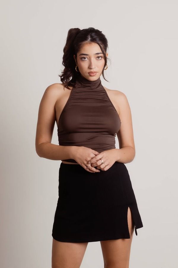 Sofie Knit Crop Top and Cardigan Set - Chocolate Brown
