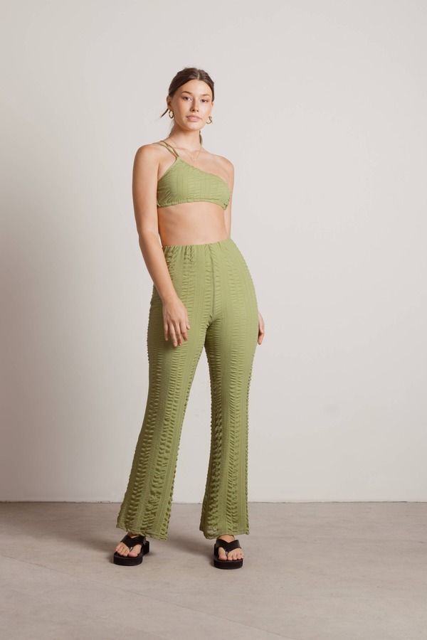 Looking to wear a '70s inspired outfit to your next event? Look no further than the Over Time Green Ruched Straight Pants. These high waisted statement pants have a flared bottom for a boho chic style. Pair these party pants with the Over Time One Shoulder Ruched Bra Crop Top for a matching set.