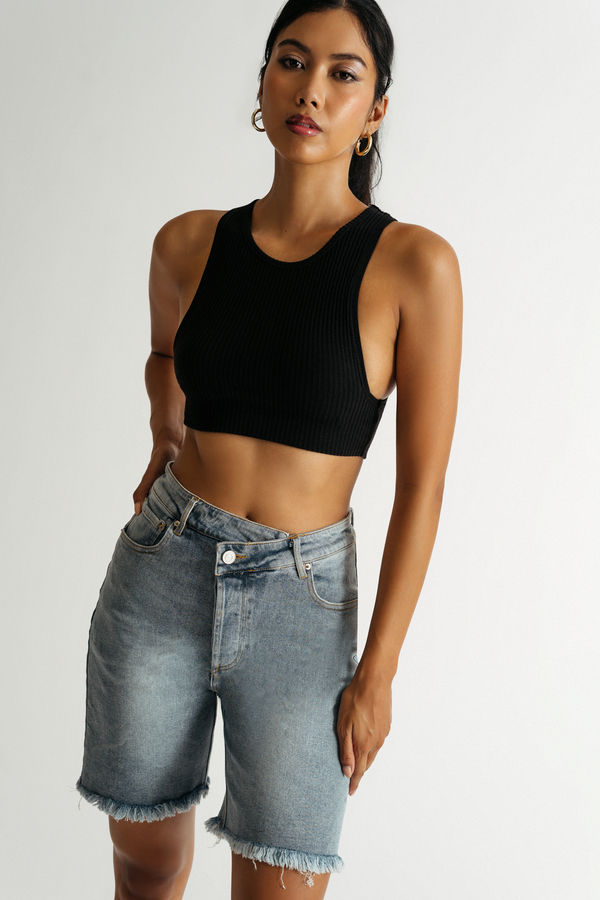 Might want to take a vacation in the Cypress Park Medium Wash Overlap Bermuda Denim Shorts. These high waisted denim shorts feature a button fly, distressed hem, and two back pockets. Pair with a basic crop top for a casual day look.