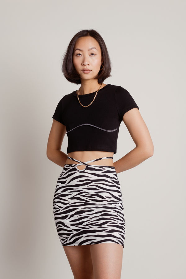 Blend In Cutout Mini Skirt - Black & White