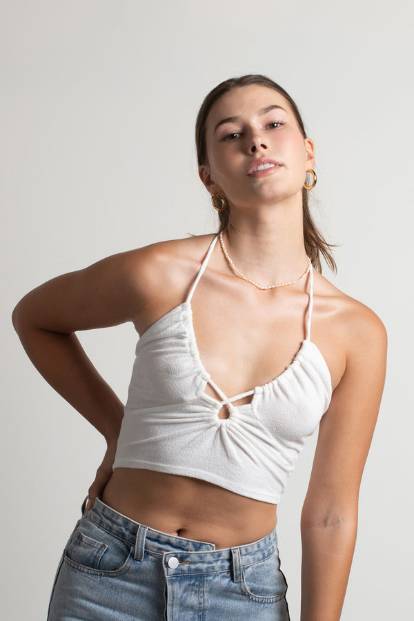 Slay the scene in the Natalia Crop Top in Ivory! Featuring adjustable halter neck ties, a daring front cutout, and trendy keyhole details, this crop top is the perfect blend of bold and chic. Dress it up with a mini skirt for a night out at the club, or keep it casual with high-waisted jeans for those sunny summer days. No matter the occasion, you'll be the center of attention!