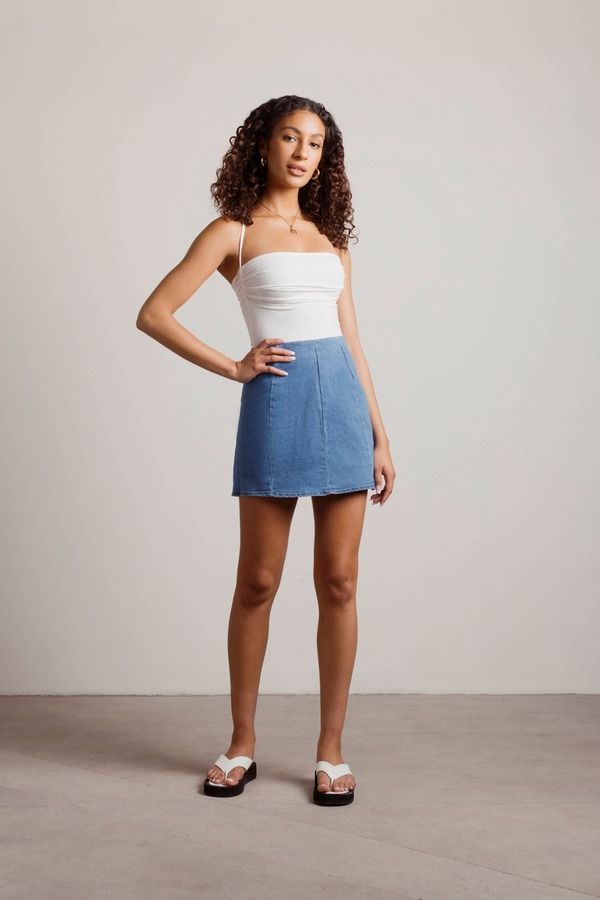 Finders Keepers Slide Denim Mini Skirt - Blue