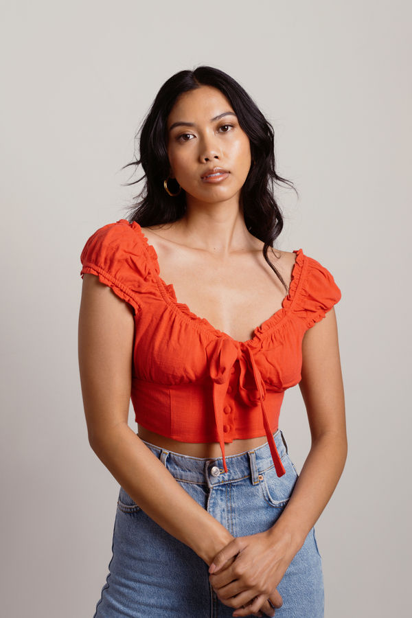 The Day Time Party Red Front Tie Crop Top is ready for your next outdoor party! This crop top features a sweetheart neckline, buttons, and a front tie. Complete the look with high waisted pants and strappy sandals for a sweet summer style.