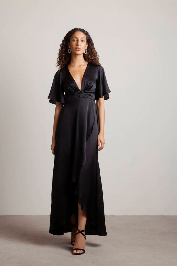 The Joy Of It Satin Surplice Maxi Dress - Black