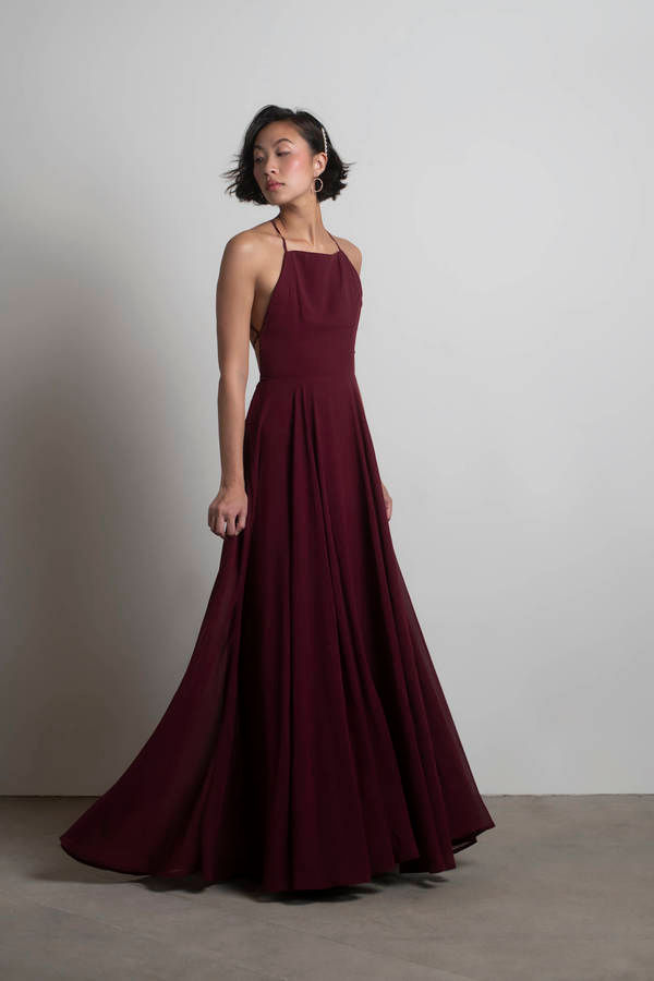Last Touch Halter Cross Back Maxi Dress - Burgundy
