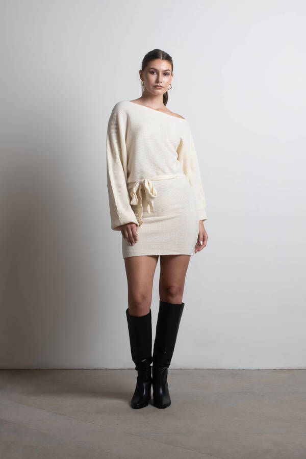 Arabelle Off The Shoulder Sweater Mini Dress - Ivory
