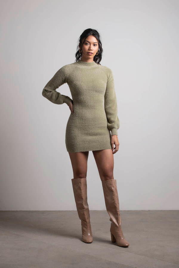 Kamila Fuzzy Sweater Mini Dress - Olive