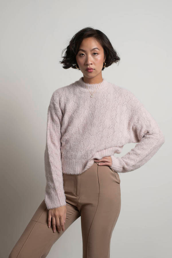 Give a warm welcome to the Casandra Mock Neck Fuzzy Sweater. This slouchy Pink fuzzy sweater offers a mock neckline and warm knit material that will keep you warm all day and night long. Pair with a suede mini skirt and combat boots for a comfy chic party look for the holiday season.