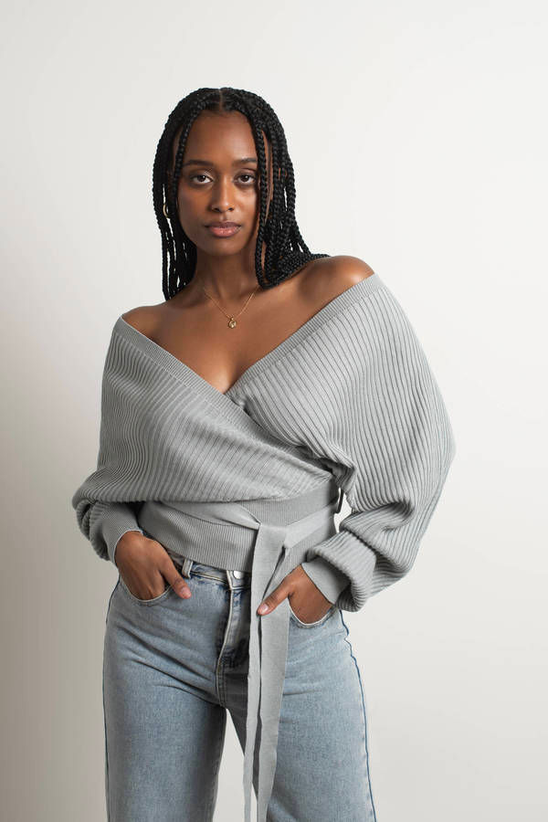 The newest addition to your wardrobe is the Relax Sweetie Grey Wrap Tie Sweater. This sweater features an adjustable tie closure, bardot neckline, and ribbed material. Pair with your favorite jeans for a chic look to wear to the office.