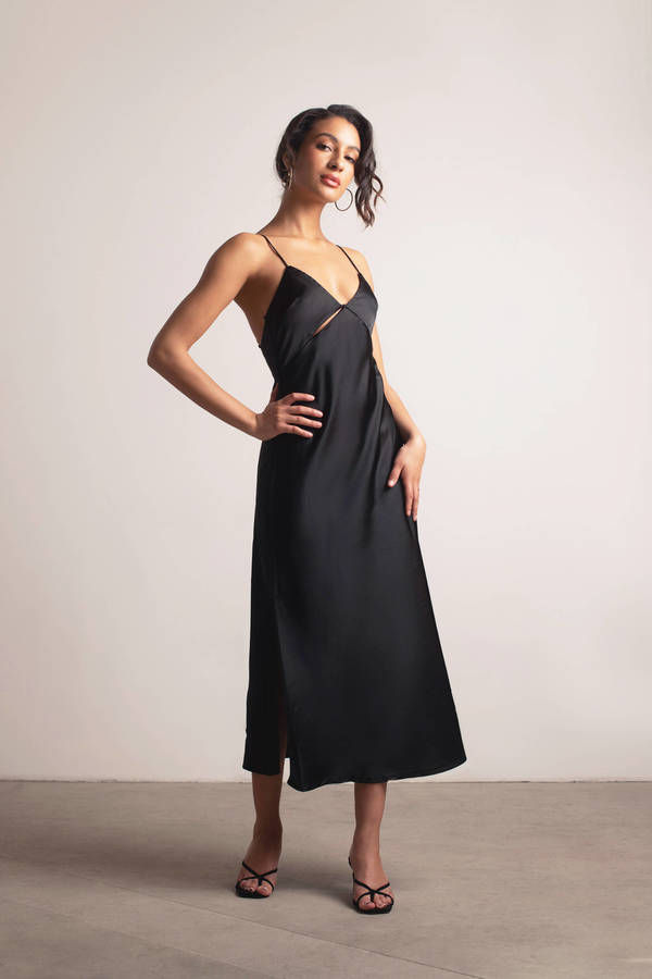 Show Up Satin Cami Midi Dress - Black