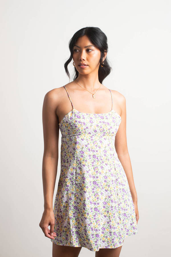 Cali Girl Floral Skater Mini Dress - Lavender
