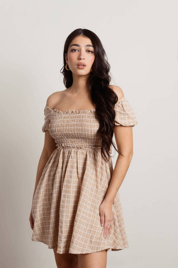 Lyndsey Lace Up Back Babydoll Mini Dress - Beige