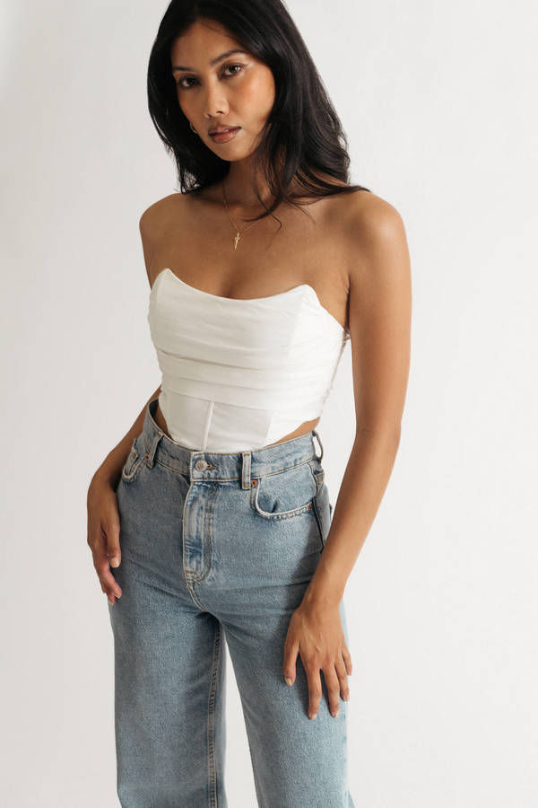 Just Thinking Of You Off White Bustier Crop Top